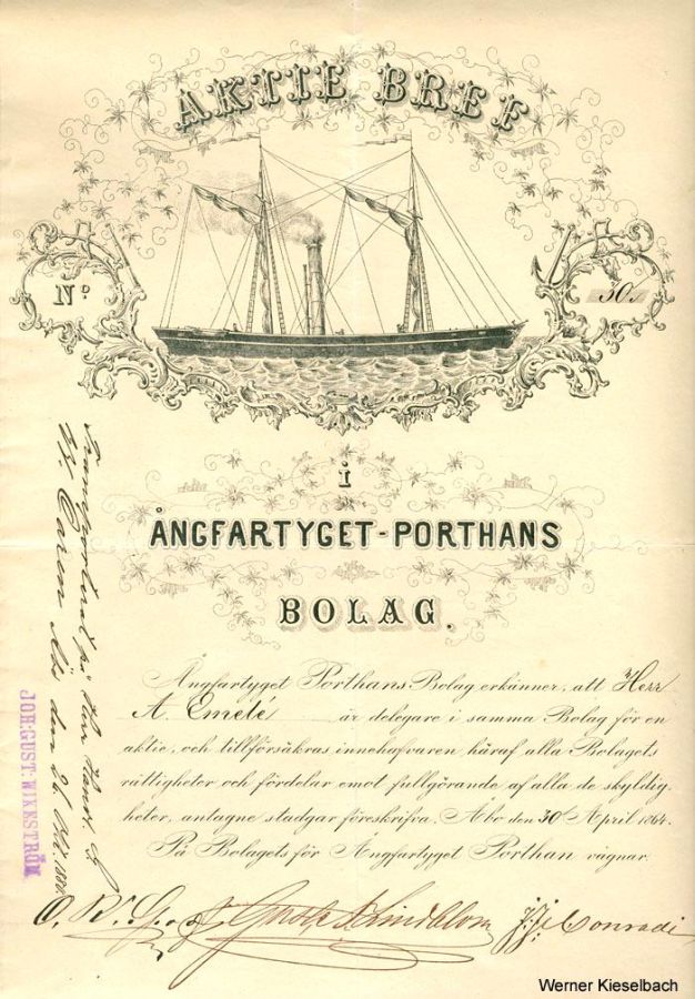 -varustamon osakekirja vuodelta 1864,