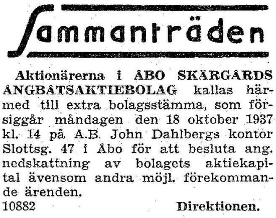 | -1922 ostettiin ja sulautettiin varustamoon Ångbåts