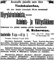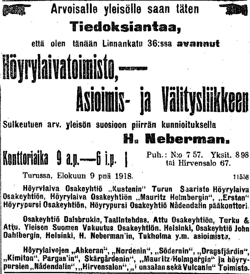 Turkuun heinäkuussa 1918 höyrylaivatoimiston,