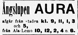 | -syksyllä 1888 myytiin Aura ja Helmi Vulcan yhtiölle 19000 mk:lla | ||