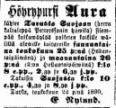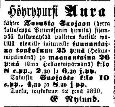 ÅT 19.07.1883 | Turun Lehti 08.05.1884 | Sanomia Turusta 10.10.1888 | |||