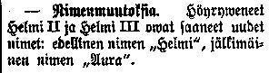 | Nimihistoria: Helmi III, Aura | ||