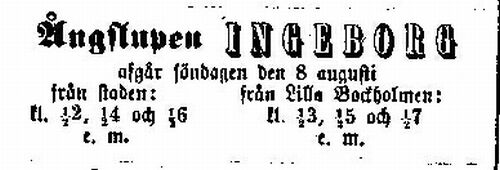 | -rakennettu heinäkuun puolessa välissä 1875 W:m Crichton & C:o, Turku. Oli s/s Frithiofin sisaralus. | ||