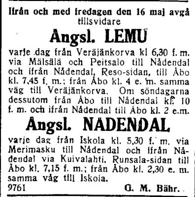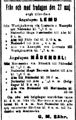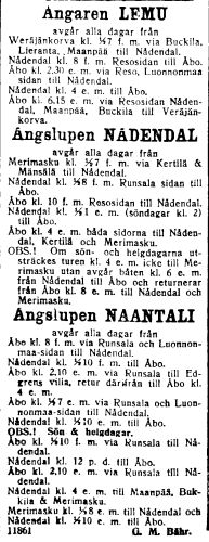 | -ajoi s/s Nådendal:n kanssa Turku - Naantali - Veräjänkorva vuoroa noin 4 edestakaista matkaa vuorokaudessa. | ||