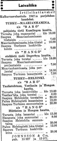 | -1950- ajoi pelkästään reitillä Vaasa -