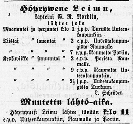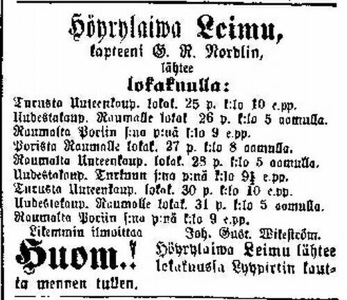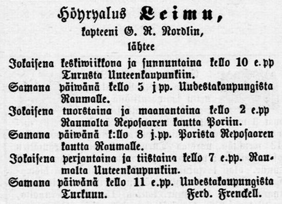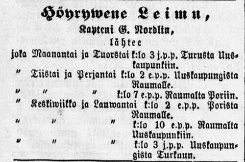| -toukokuussa 1874 laitettiin Turku - Uki - Rauma -