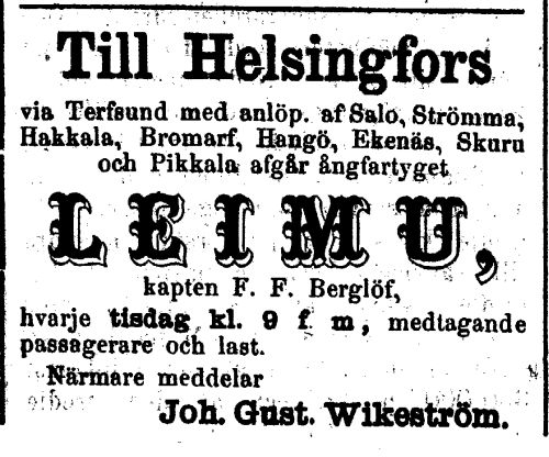 | -1896 myytiin Käkisalmeen Laatokalle varustamolle