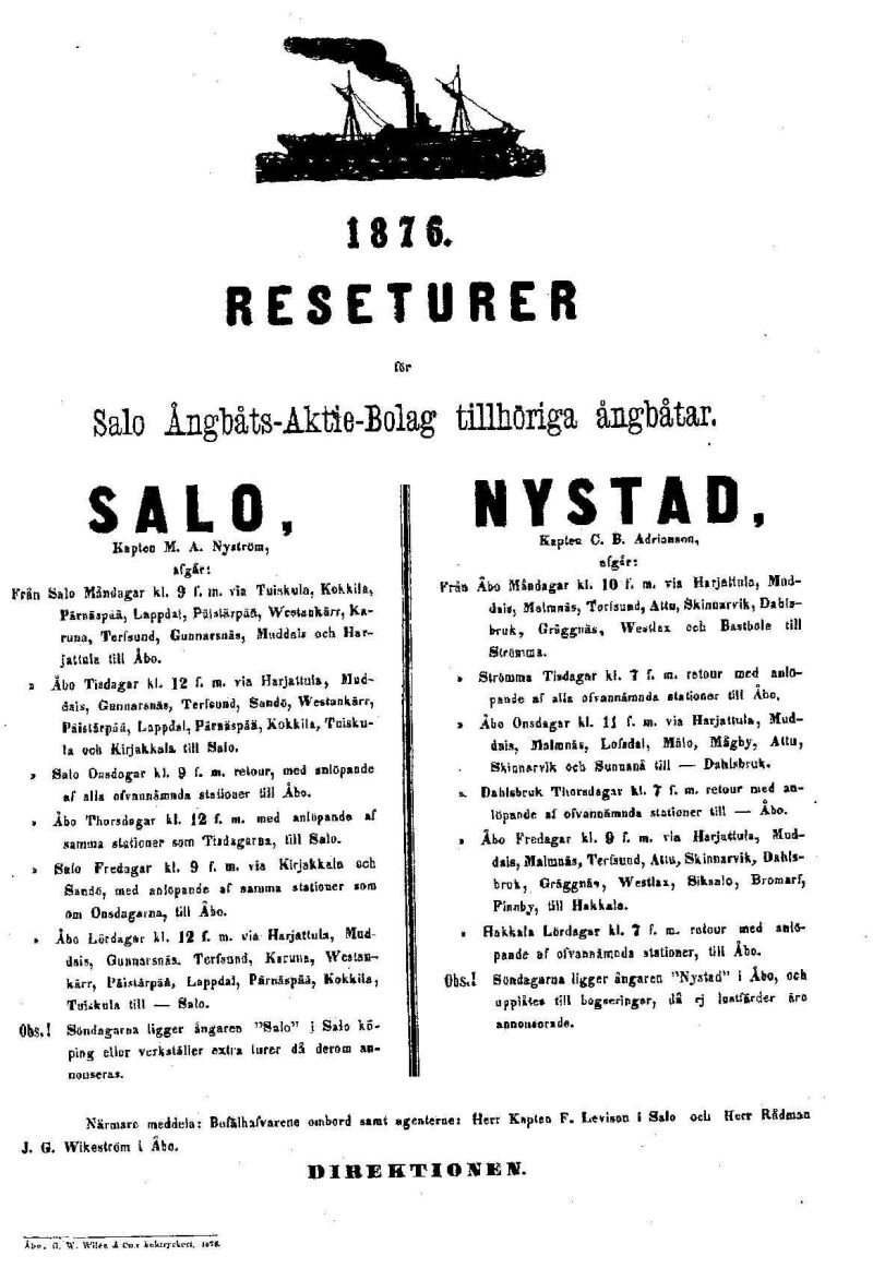 | -1892 s/s Onnin kanssa Pori - Turku - Salo - Helsinki
