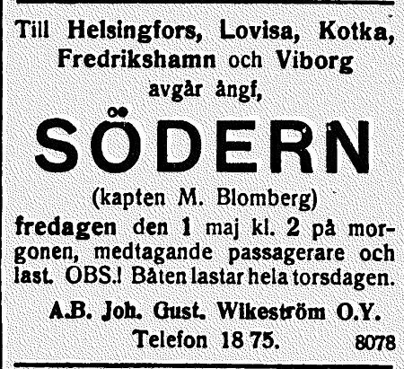 Ångfartygs Ab:lle, joka laittoi sen samalle Helsinki -
