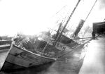 konepajan laiturissa. Laivaa laitettaessa talviteloille,