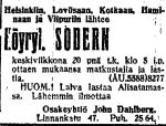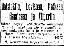 -1920 heinäkuussa myytiin Loviisaan Lovisa