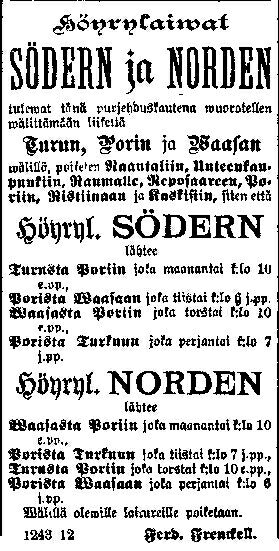 -1892 s/s Nordenin kanssa Turku - Vaasa linjalle |