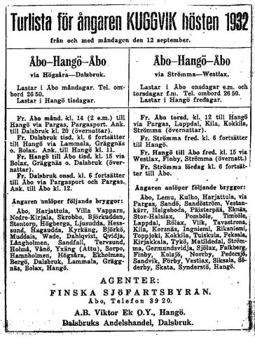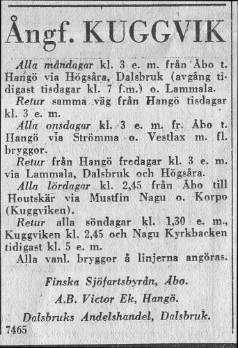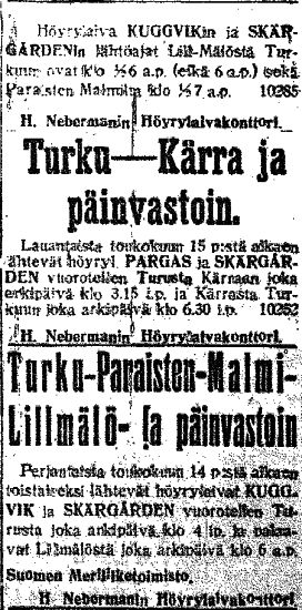 aikaa Turusta Kemiön Kiilaan. 1926-30 se ajoi kesällä
