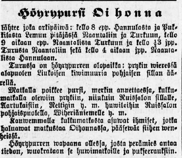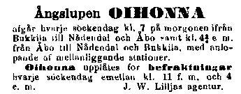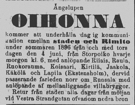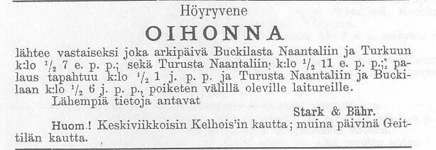| -Oihonna niminen höyryvene oli taas 1899 Turku -