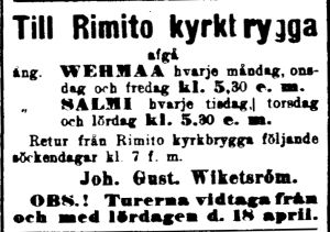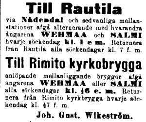 | -1909 reittiä pidennettiin s/s Salmen kanssa