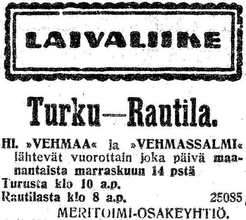 | -1925 oli s/s Vehmassalmen kanssa Turku - Merimasku -