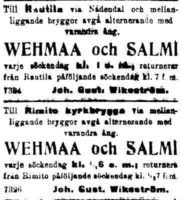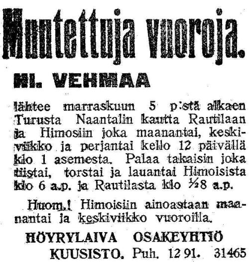 Wehmaa, Vehmaa, Tiran, m/s Kustavi I, m/s Liisa |