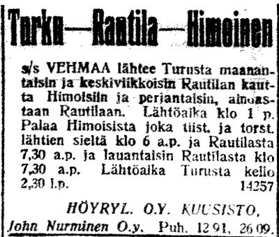 | s/s Vehmaa Turussa,