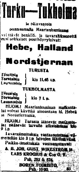 | -1929-34 kesälaivana Hki - Hanko - Sto linjalla |
