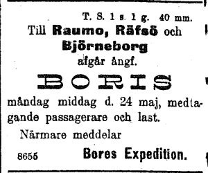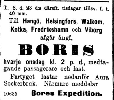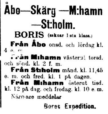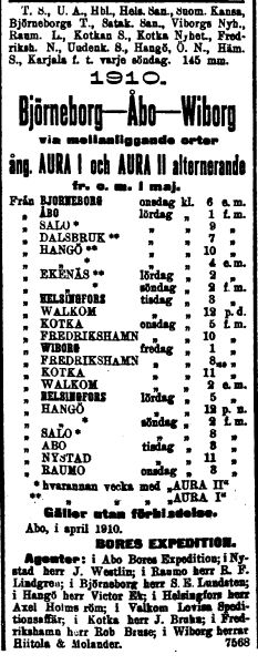 ja rahdin kuljetuksen linjoilla Turku - Viipuri ja Turku