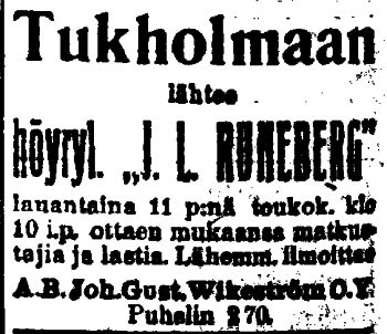 J.L.Runeberg aloitti matkat Tukholmasta Balttiaan |